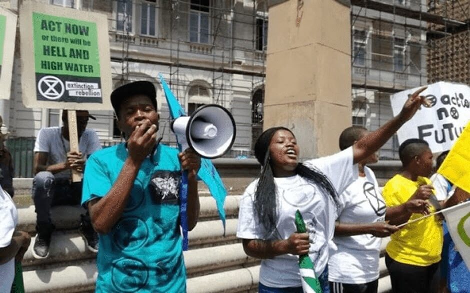 Johannesburg, South Africa. About 50 activists, led by XR, picketed outside the Gauteng Legislature, calling on the government to declare a climate emergency. Photo: Zoe Postman.