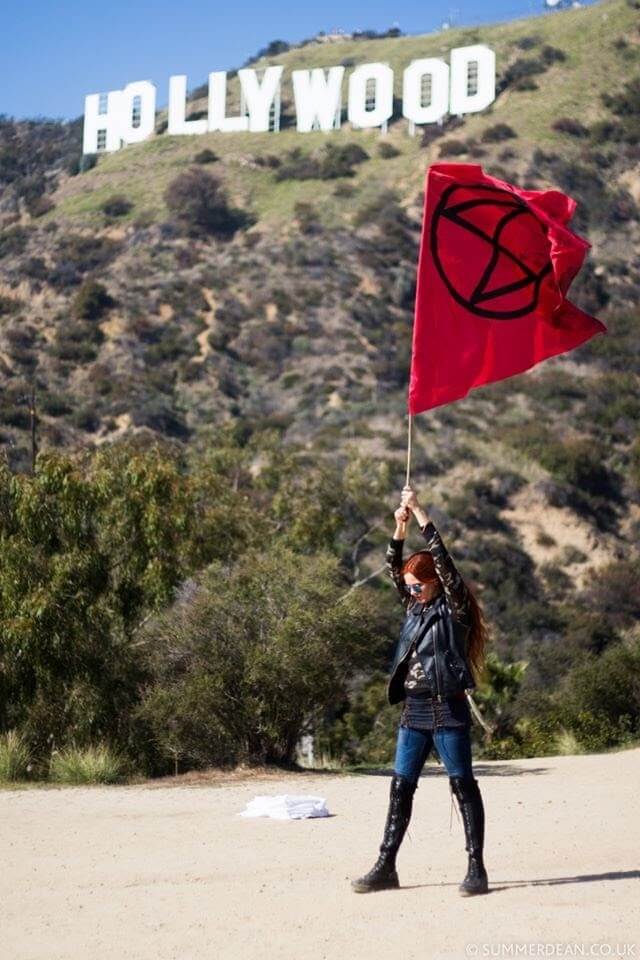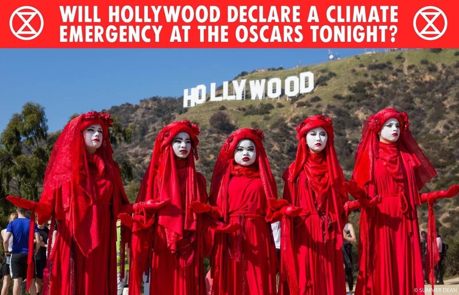 Hollywood, listen up: GLOBAL INFLUENCE = GLOBAL DUTY (Photo: Dennis Noack/SpectralQ) The day before the Academy Awards ceremony, XR Youth LA held a dramatic die-in under the iconic Hollywood sign. An organiser explains their target: “Hollywood is a global influencer, and what it does or doesn’t do sends a powerful message around the world. Hollywood has a moral duty to become Climate Emergency Storytellers.” Horrified by the 15 million tons of CO2 that Hollywood produces every year, XR Youth LA demands annual eco-audits and net-zero CO2 by 2025.