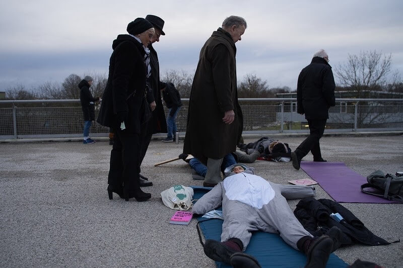 Rebels stage a “die-in” as Siemens shareholders arrive for the AGM (Photo: Helge Brügner)