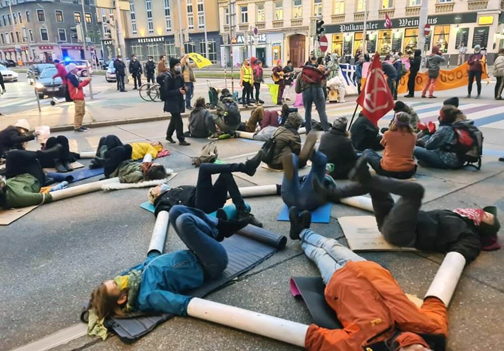 The ‘Honeycomb Campaign’ saw rebels swarm the city’s main square, Michaelerplatz, and establish hexagonal lock-on formations and hexagonal blockades on key roads in reference to our third demand of Citizens Assemblies. Genius!