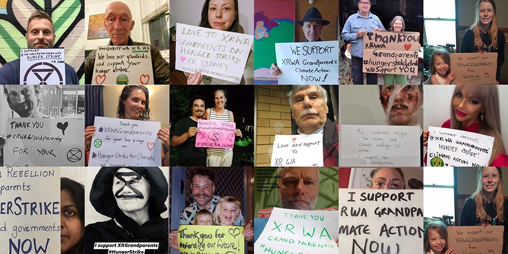From 30 October to 5 November a number of rebel grandparents went on hunger strike to remind people that the climate crisis means famine for millions of innocent children. What started with 3 hunger strikers snowballed as other grandparents joined in. The strike was timed to coincide with a Climate Change bill being debated in the Western Australia state parliament.