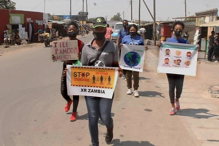 XR Zambia rebels march to raise awareness of Covid-19 and the climate emergency.