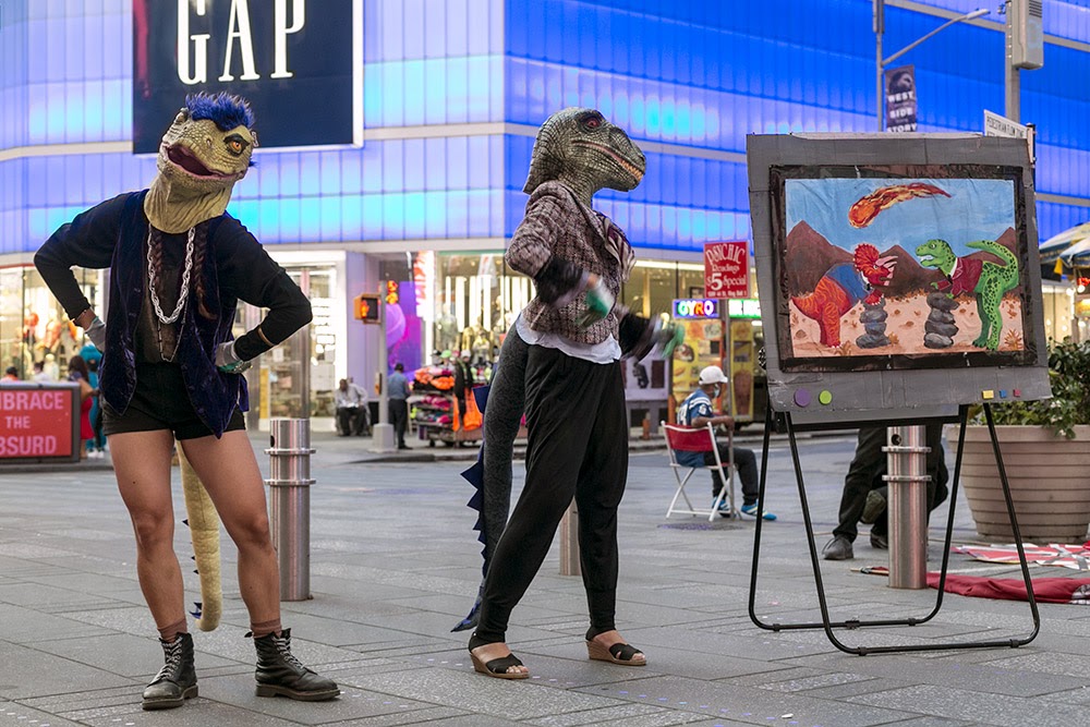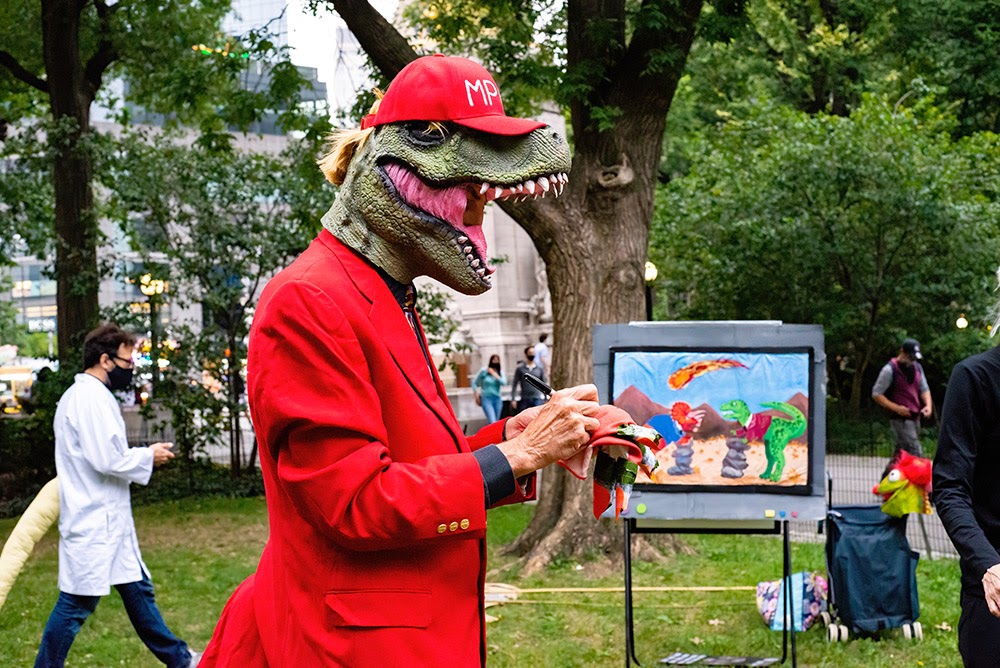 The premiere of Jurassic Farce in Prospect Park, a short work of musical street theater produced and performed by members of Extinction Rebellion NYC. The play tells the story of how dinosaurs might have avoided extinction 66 million years ago if only they had been able to form a Citizens’ Assembly to address the meteor crisis that threatened the planet. See the play here.