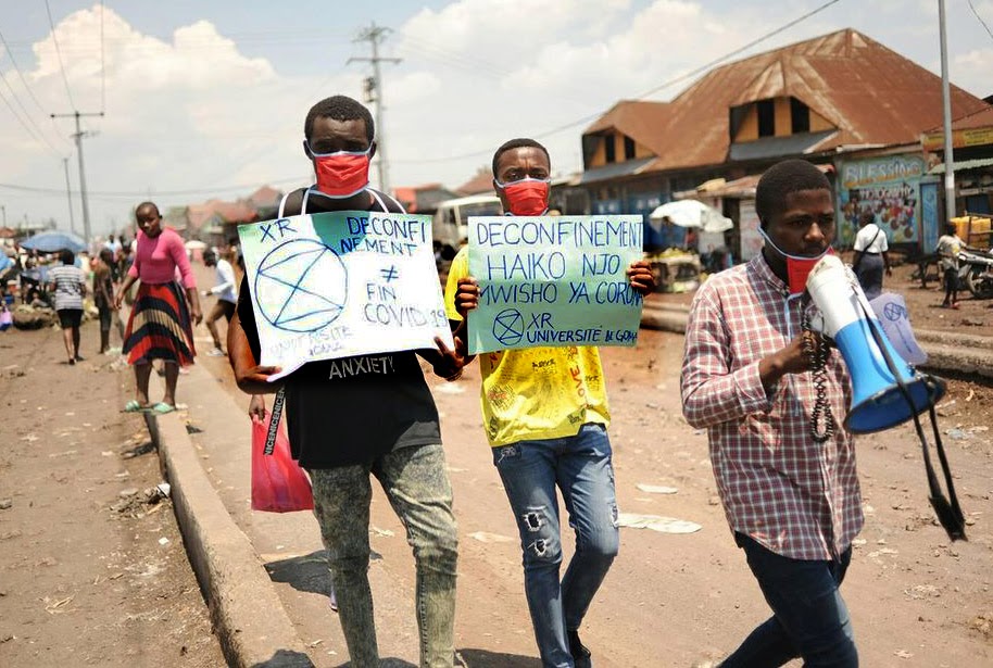 Activists from XR University of Goma walk through parts of the city to raise awareness of the risks of Covid-19 and distribute masks.