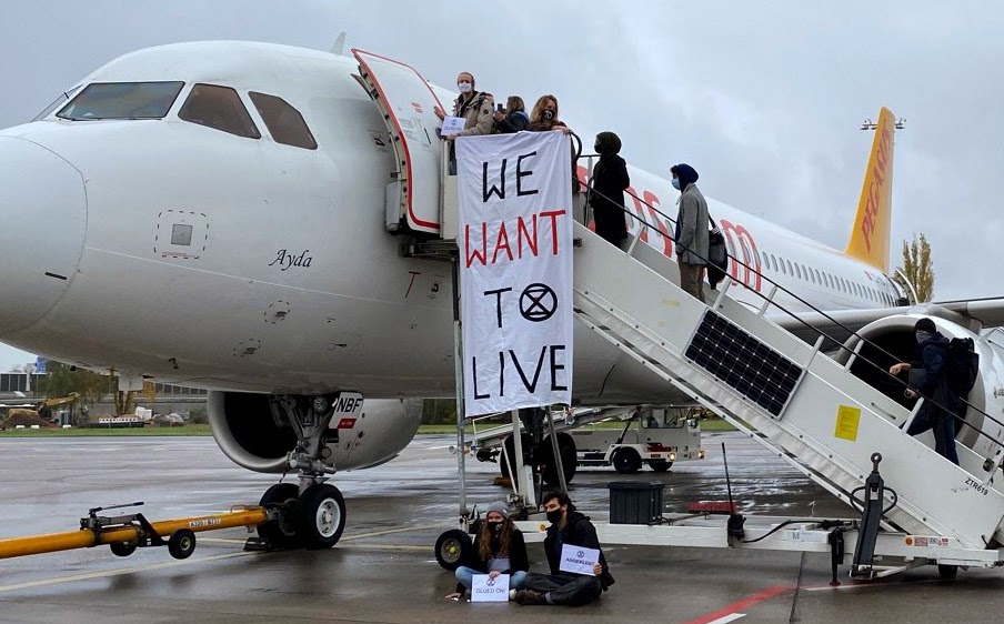 “Flying is the fastest way to fry the planet!” German rebels glued themselves to a plane at the newly opened Terminal 5 at Berlin Airport to demand a rapid reduction in air traffic.