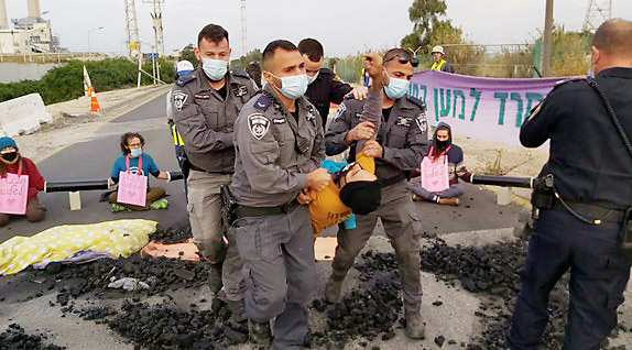 40 brave rebels blocked the entrance to both the giant coal-fired Rothberg Power Station and the Eilat Ashkelon Pipeline Company, whose pipeline pumps millions of barrels of crude oil every day between ports on the Mediterrean and Red Sea.