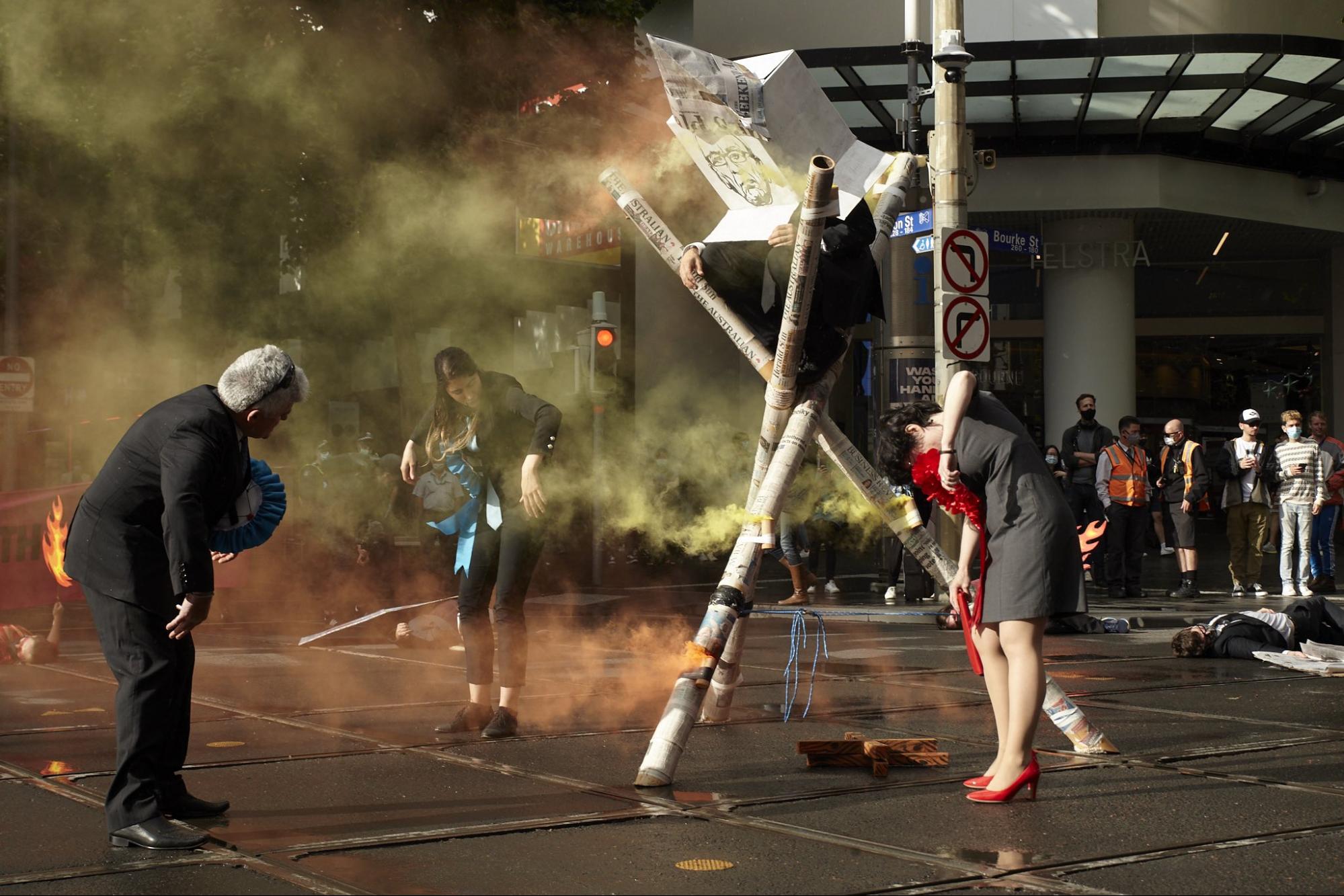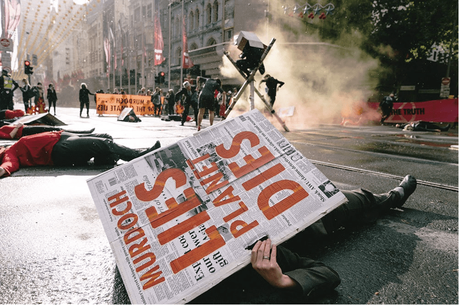 A wave of coordinated actions rippled through Australia last month. The ripples started in Melbourne’s Central Business District, where the emphasis was on exposing the planet killing lies of the Murdoch press. Rebels from XR Victoria used tripods, banners and some good old fashioned theatrics to block a major intersection.