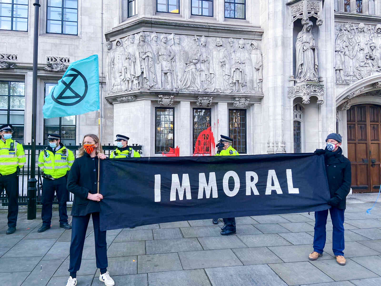 A short film shot at an XR protest outside the UK Supreme Court last month. The Court overturned a recent ruling that building a new runway for Heathrow airport was illegal.