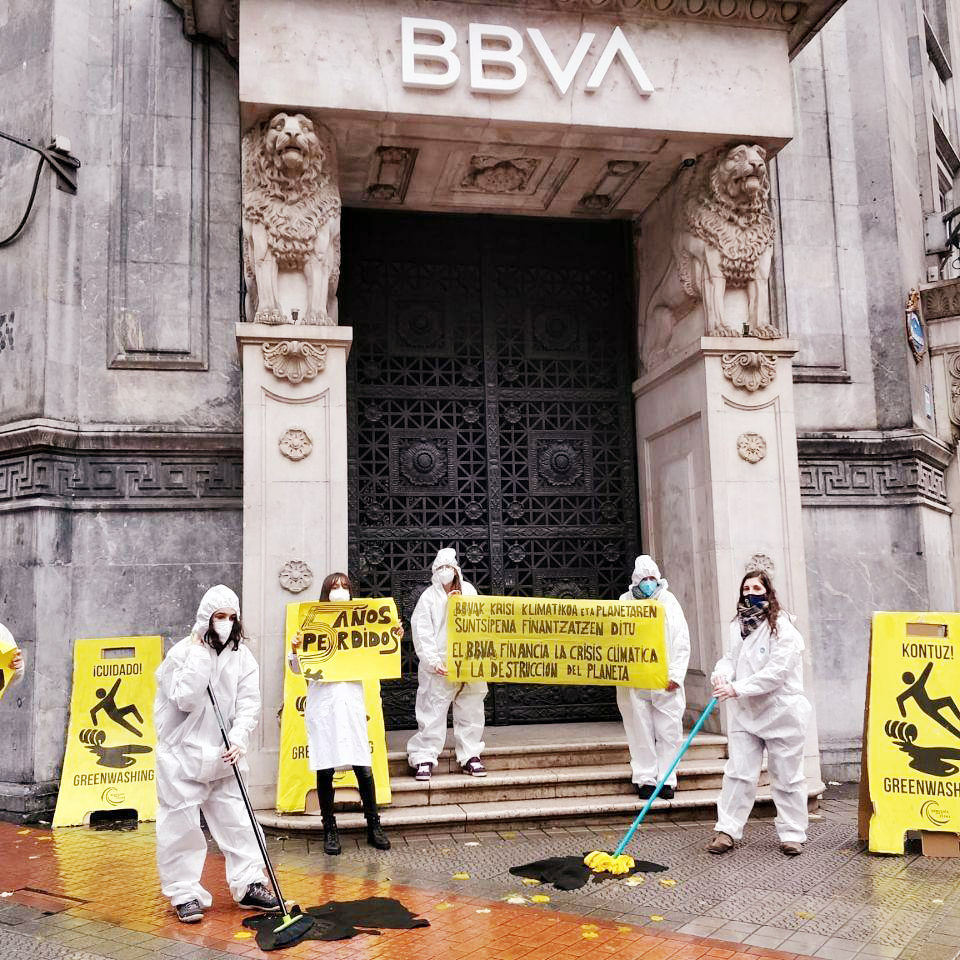 12 Dec | Spain: Rebel cleaners in Bilbao in the Basque country. The Paris Agreement anniversary saw rebels mobilise in more than 25 towns across Spain to demand real measures that limit global temperature to a 1.5 ºC rise and an end to fossil fuels.