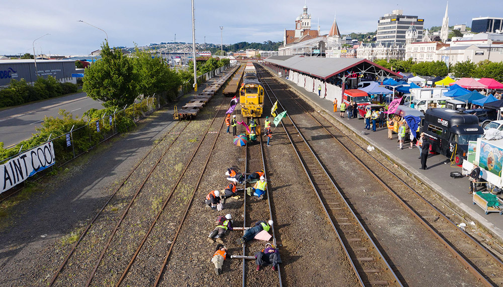 4 Dec | New Zealand: About 50 rebels locked onto railway tracks at Dunedin railway station to block a shipment of coal from Bathurst Resources’ Takitimu mine in Southland to Fonterra’s milk drying factory near Temuka.