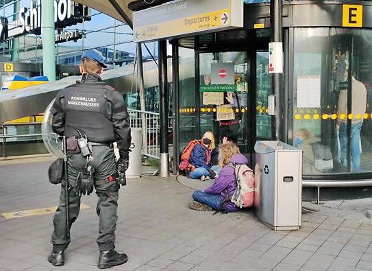 18 Dec | The Netherlands: Dutch rebels blockaded 2 entrances to Schiphol Airport, gluing their hands to doors and floors before being taken into police custody. Photo: Marechaussee
