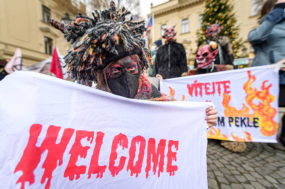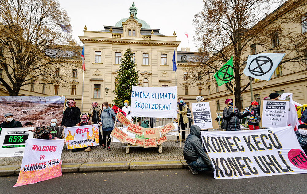 6 Dec | Czech Republic: Prague rebels and other environmental and human rights organisations demonstrated in front of 7 ministries to demand that the government support a 65% reduction in greenhouse gas emissions by 2030. Photos: Petr Zewlakk Vrabec