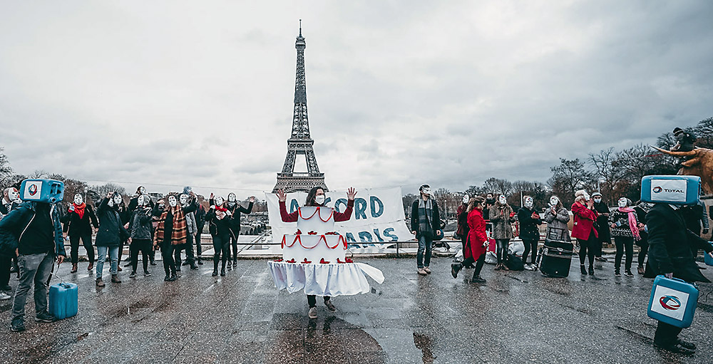 12 Dec | France: Rebels held a gruesome birthday party in front of the Eiffel Tower to mark 5 years of the Paris climate agreement. They later set fire to a banner of its name