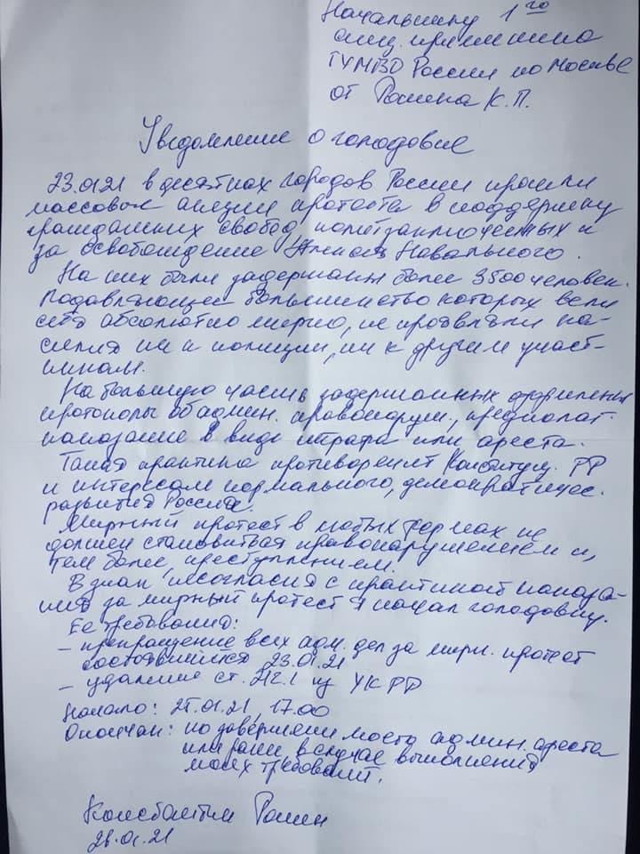 A letter from Konstantin Fokin, a Russian rebel currently on hunger strike in a Moscow prison.