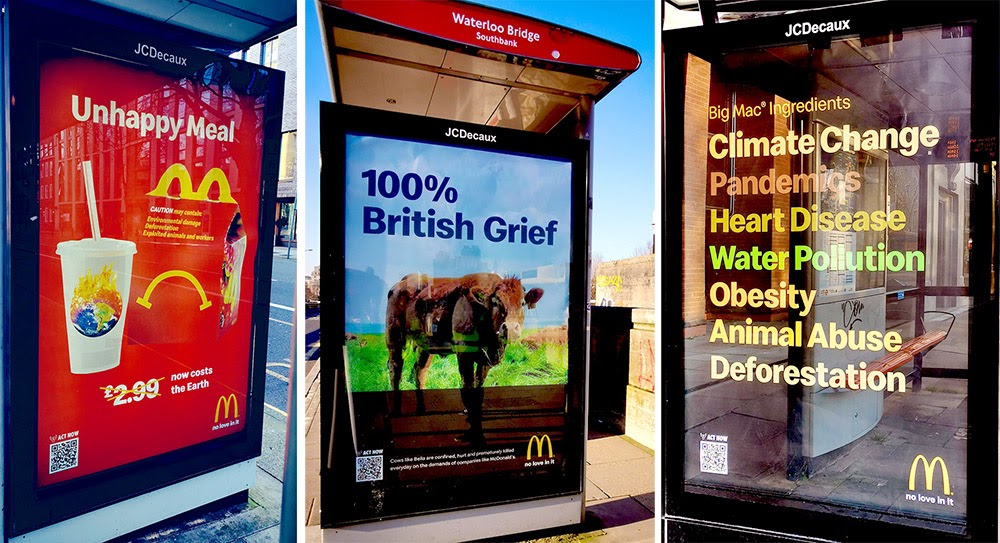 3 MAR | UK: Animal Rebellion ‘repurposes’ a number of McDonald’s adverts in central London.