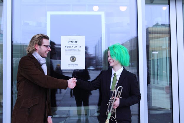 The global action was organised to condemn the Norwegian government’s climate hypocrisy as well as the state’s harsh response to domestic civil disobedience.