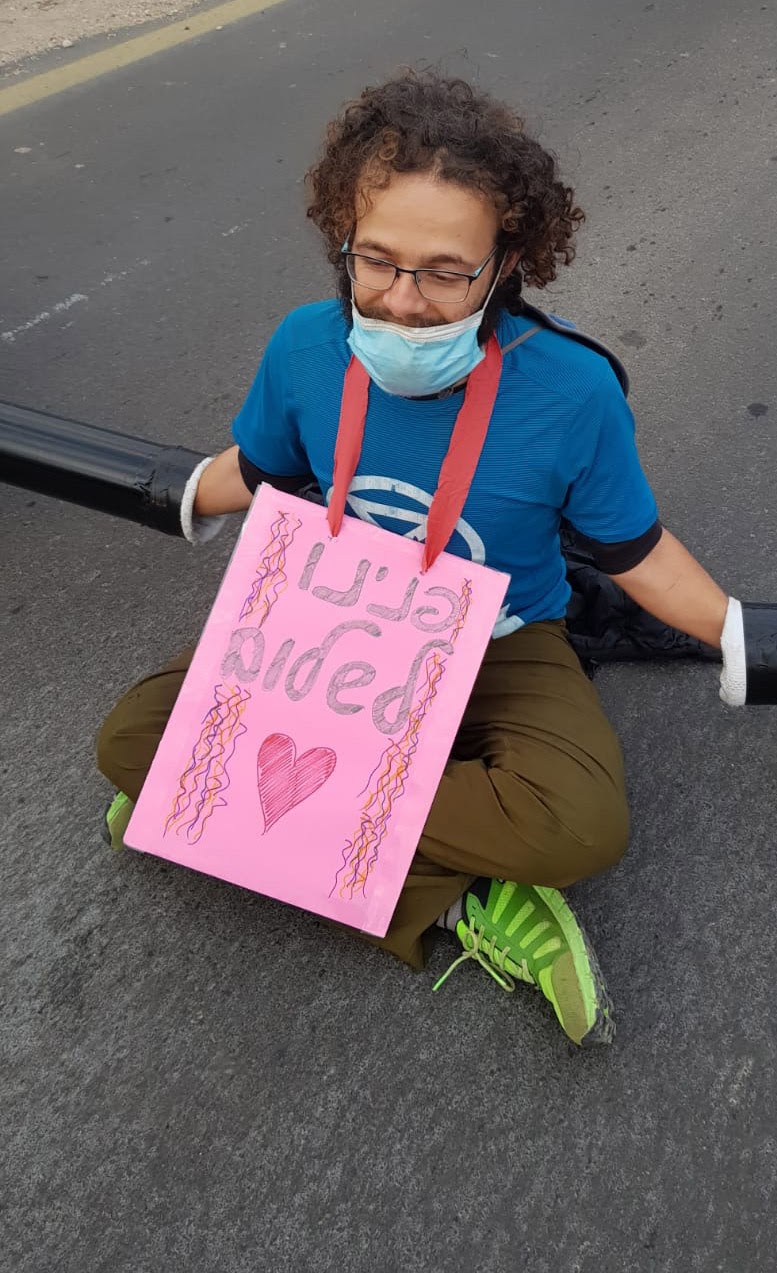 Anatoly’s sign: ‘We come in Peace’ Photo: Lior Klein