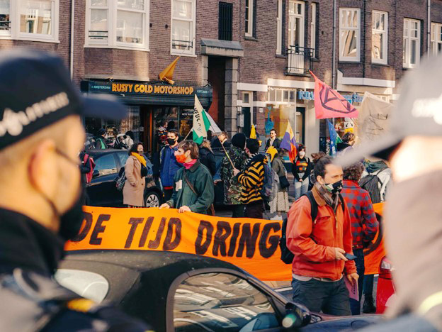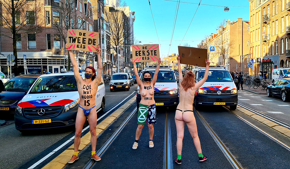 This pick up and dump tactic is a new and mutually beneficial arrangement for all parties. Images of rebels being arrested make it into the media, but the rebels don’t take up any cell space which is now severely limited thanks to covid restrictions. While protests of any size are legal in the Netherlands, social distancing still applies, and there is a strict 9pm curfew.