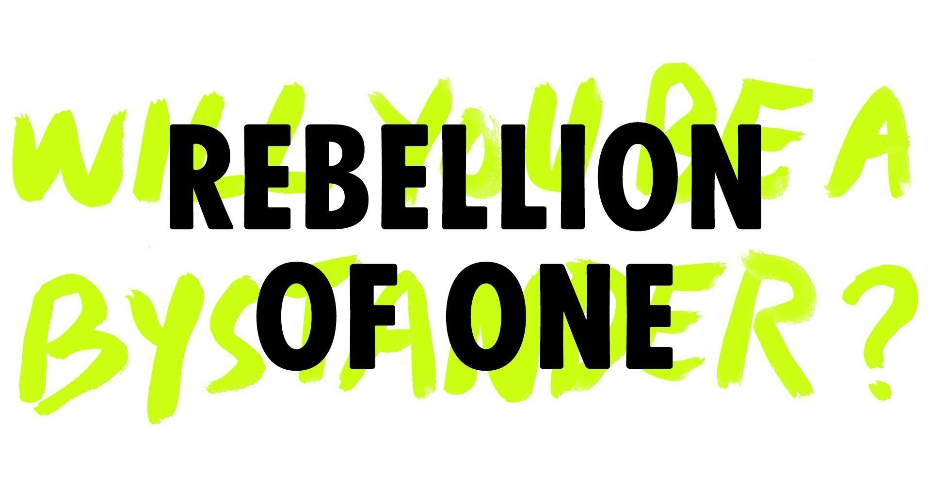 Rebellion Of One is a brand-new tactic: a single-person roadblock x1000. Each rebel wears a sign with a simple and emotive message. They sit in the road alone until they choose to move or are moved. But they have an incognito support team hiding in plain sight nearby.