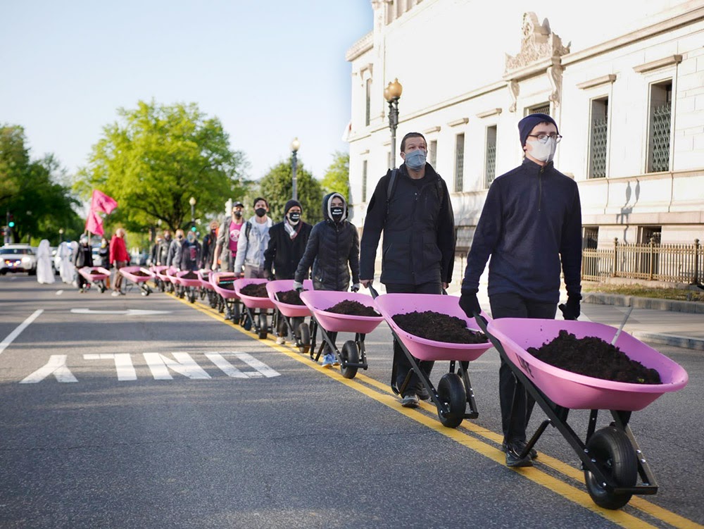 22 APR | Washington DC, USA. Rebels deliver cow dung to the White House, emphasising that any climate plan other than zero-emissions by 2025 is bullshit.