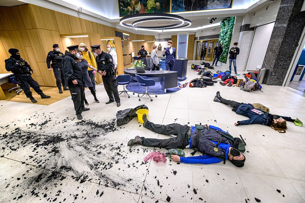 16 APR | Czech Republic. Across the country, local groups protested against the dirty banks (especially Ceska Sporitelna and Raiffeisenbank) who exacerbate the climate crisis by lending to the biggest polluters. The actions were part of the global wave of Money Rebellion.