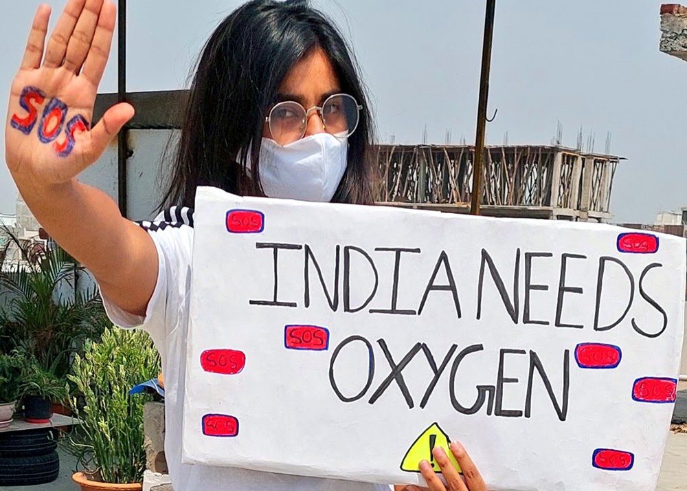 30 APR | Lucknow, India. On her 31st week of climate strike, activist Sarah says: “We need help! We need support! We need Oxygen!”