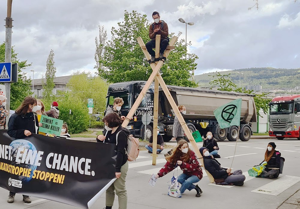 5 MAY | Heidelberg, Germany. Rebels blockaded Heidelberg Cement, the second largest CO₂ producer in Germany. The cement industry emits 8% of global CO₂ emissions, twice as much as the whole of Africa.