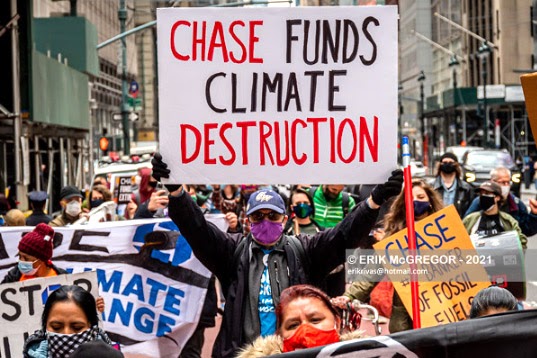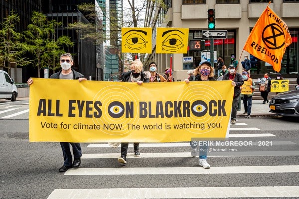 7 MAY | New York, USA. Rebels took part in the Stop the Money Pipeline coalition march on the head offices of BlackRock and JPMorgan Chase. Photos: Erik McGregor