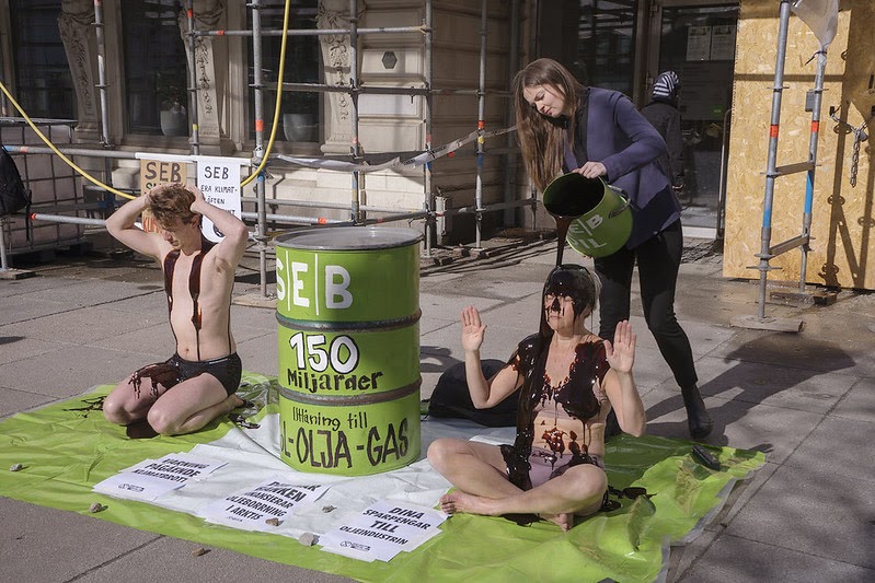 23 APR | Gothenburg, Sweden. Rebels protest outside the office of SEB to draw attention to the bank's financing of Arctic oil drilling to the tune of €3 billion. In a classic example of banker greenwash, SEB’s website claims “sustainability is about who we are and what we do”.