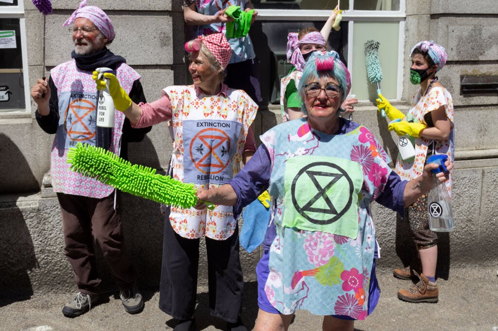 Rebels marched to the G7 summit’s media centre in Falmouth, home to thousands of journalists from around the world, and demanded they do better. Along the way, rebel scrubbers stopped at local branches of HSBC and Barclays bank to give them a good clean after all their dirty deals with the fossil fuel industry.