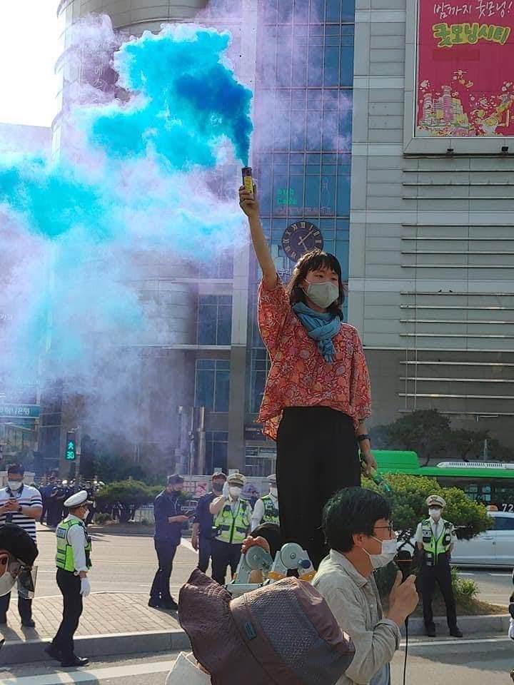Thankfully, help came from nearby citizens and protesting members of the Green Party. They recovered the ladders and restored access to the ‘space of truth’ where rebels could tell their stories and sing popular Korean songs with altered lyrics about rebellion.