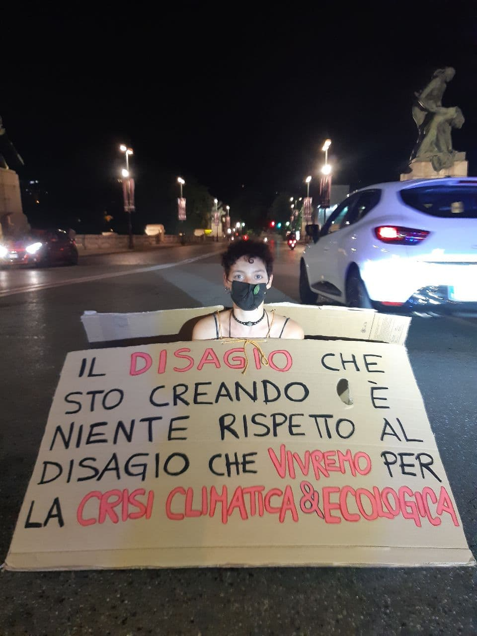 Sign: ‘The discomfort I’m creating is nothing compared to the discomfort we’ll experience because of the Climate & Ecological crisis.’ 5 rebels in Turin slowed traffic for hours as Italian police were not legally allowed to remove them. Instead they issued hefty fines totalling over €6000. A crowdfunder is incoming.