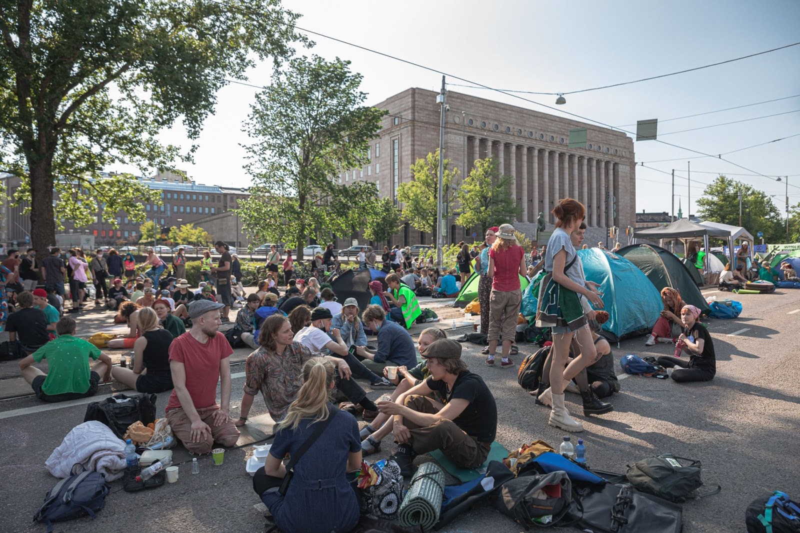 Rebels camping out in front of the Finnish Parliament. Photo: Elokapina
