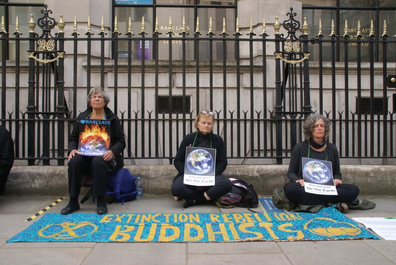 25 JUNE | UK: XR Buddhists meditate outside the London HQ of ecocidal bank Barclays. Days later Money Rebellion launched it’s Earth Tax Strike. At least 3% of the UK’s tax revenue is spent subsidising fossil fuels and ecocide, so rebels are pledging to withhold that amount to fund ecological repair instead. More info here. Photo: FULouGraphy