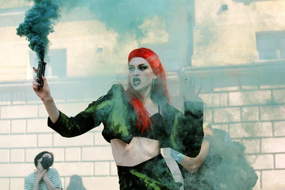 A roadblock dance performance of Britney Spears’ song Toxic inspired by XR Netherlands’ Toxic System Rave. Photo: Tiina Jalonen/ Elokapina