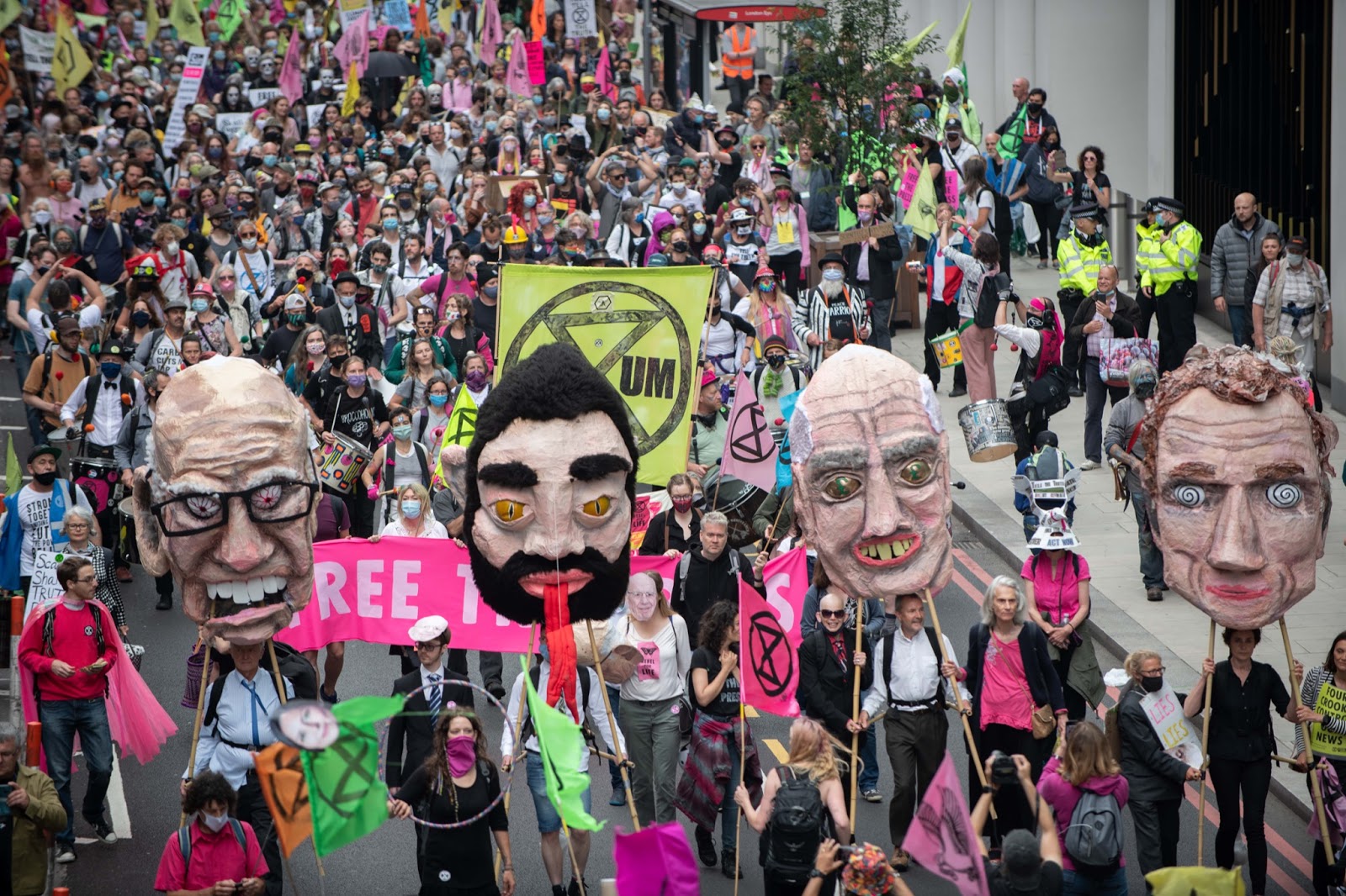 Later more than 2,000 rebels and other activists met at Parliament Square and marched across London to the News UK headquarters, owned by the infamous Rupert Murdoch.