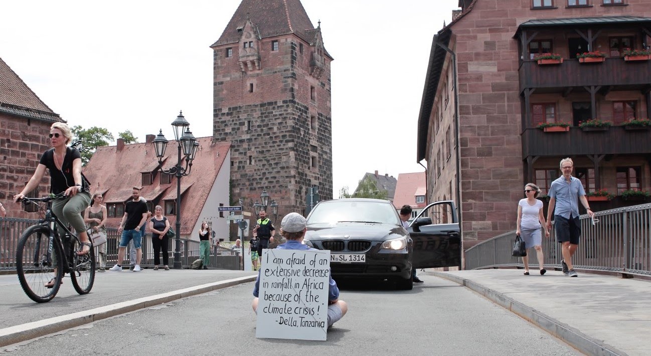 12 JUNE | Germany: Over 100 sitters across 30 cities took part in XR Germany’s 3rd Rebellion of One (Ro1) event. The sitters wore sandwich boards with comments from people in the Global South. In Hamburg, 2 glue-ons stuck to streets for over 4 hours and 20 rebels were arrested. Another Ro1 is planned in Berlin as part of the RiseUp action in August. For more on the synchronised Ro1 actions across Europe go to Newsletter XTRA.