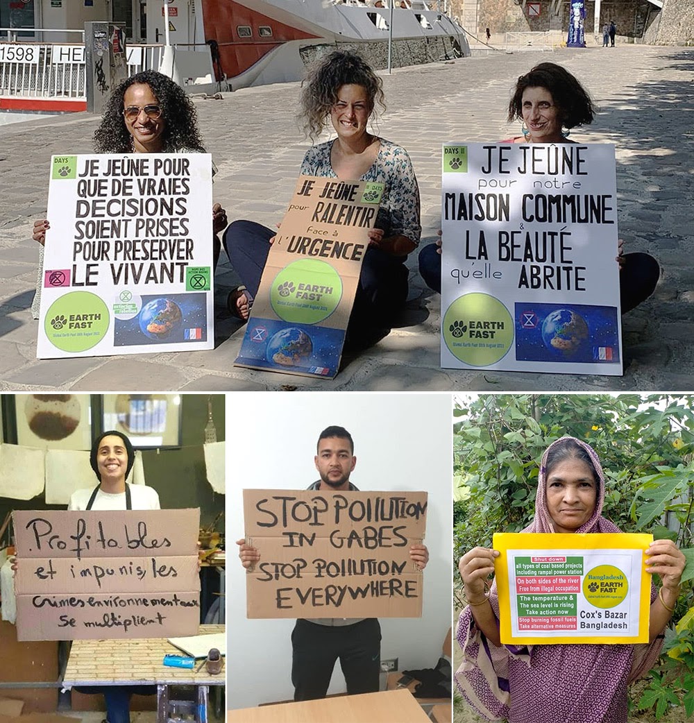 28 AUG | Worldwide (pictured France, Tunisia, Bangladesh). Over 100 rebels based in countries all around the world are taking part in an XR Earth Fast. Some went without food for a day, others a week. A brave few are still going until their demands are met.