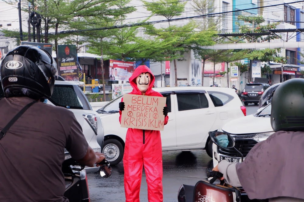 10 AUG | Makassar, Indonesia. A surrealist Rebellion of One points out that, in the month Indonesia celebrates independence, the country is not free from the Climate Crisis.