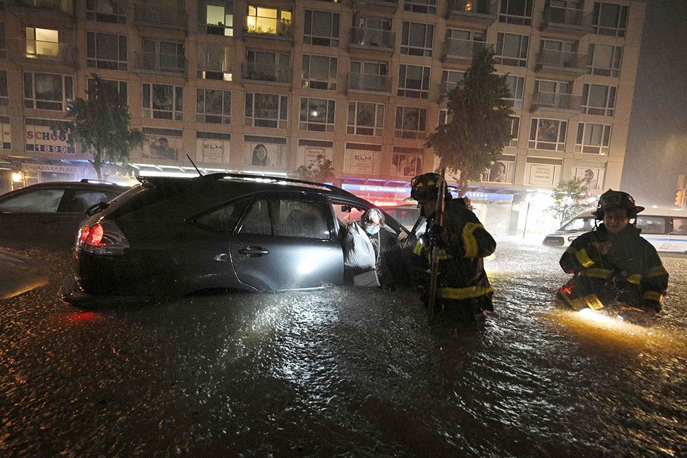 A New Yorker is escorted to safety amid flash flooding caused by Hurricane Ida.