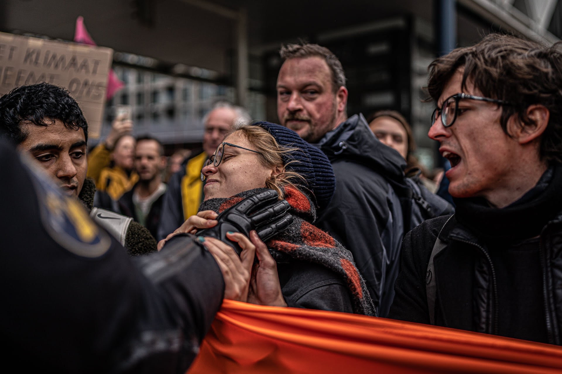 11 OCT | The Hague, Netherlands A police officer grabs a rebel by her throat during the opening day of the Dutch Rebellion. Expect a full report next issue. Photo: Joris van Gennip