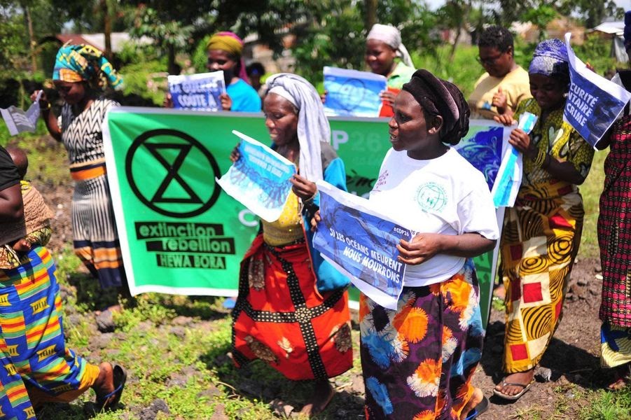 XR Hewa Bora, formed by a group of displaced Bambuti hunter-gatherers, have first-hand experience of the impact of deforestation. Demonstrating near the old Mugunga Refugee Camp in North Kivu, they drew attention to the communities who have been forced from their forest homes by agriculture, mining and logging.