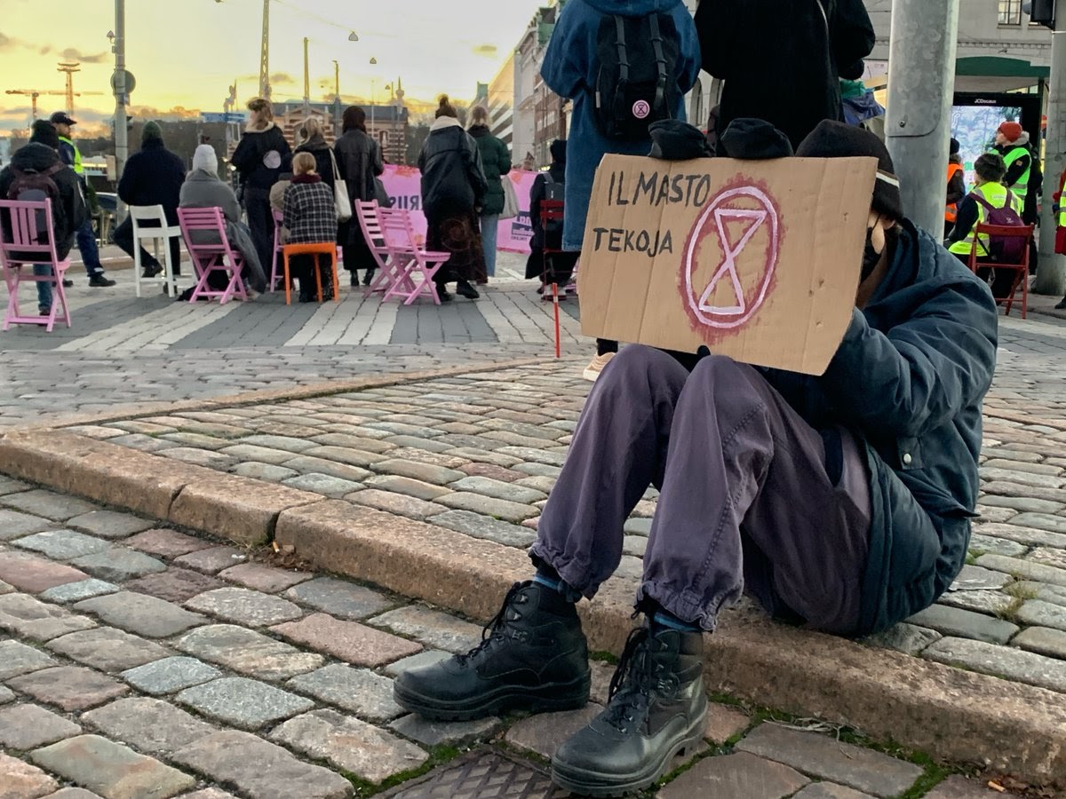 12 NOV | Helsinki, Finland: 65 rebels occupy a central square to protest COP26. After a couple of police warnings to disperse, 15 protesters were arrested and taken away in vans.