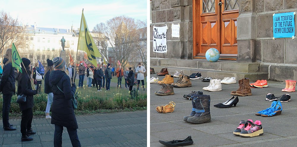 18 NOV | Rejkyavik, Iceland: Rebels place empty shoes outside their parliament to mourn those killed by climate change and demand their government declare a climate emergency.