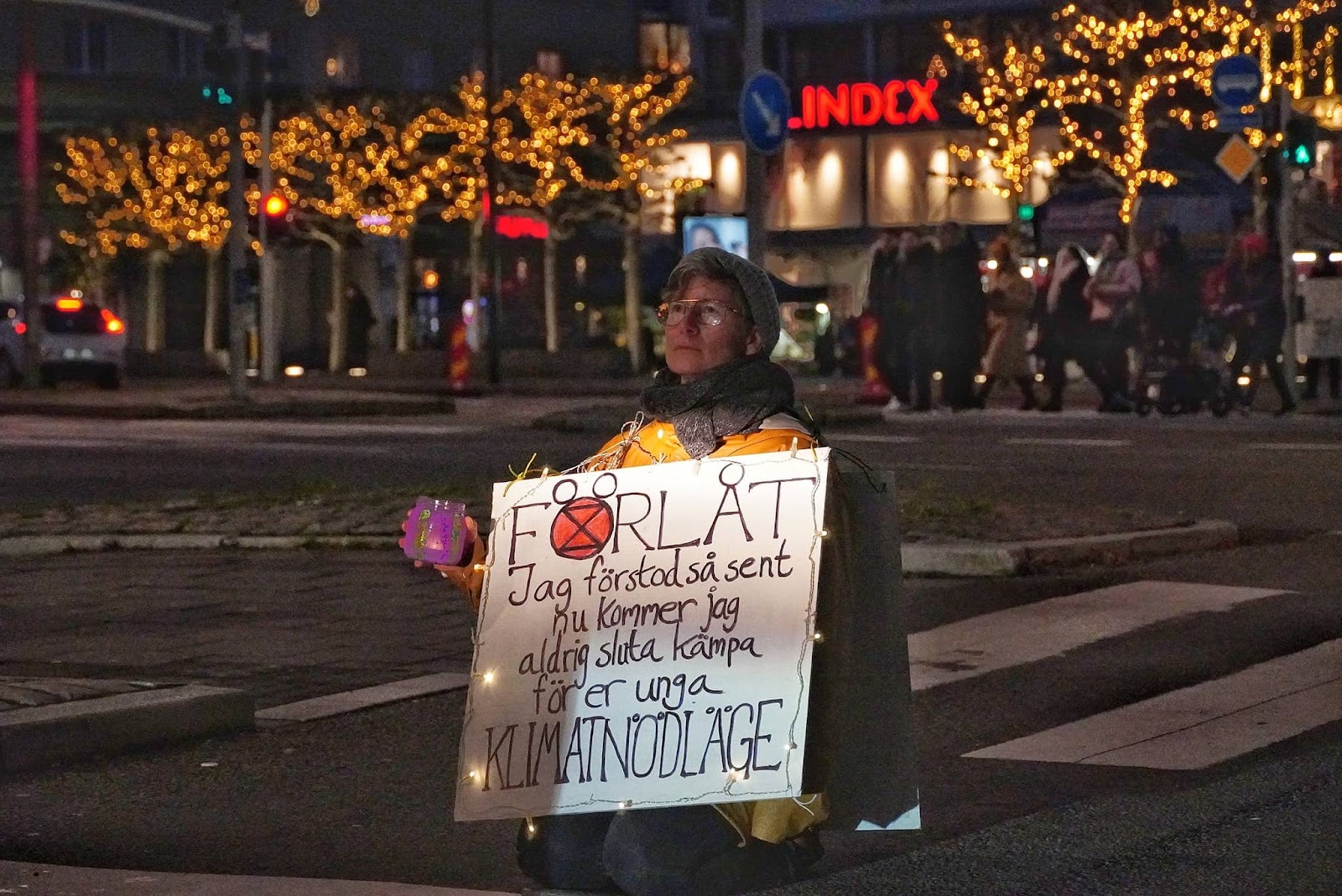 4 DEC | Malmö, Sweden: The sign reads “I'm sorry! I understood too late. Now I will never stop fighting for you, the young. Climate Emergency!”