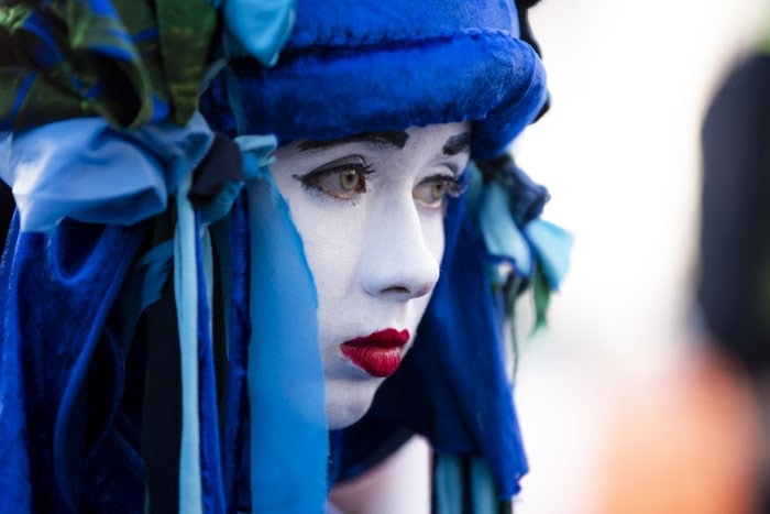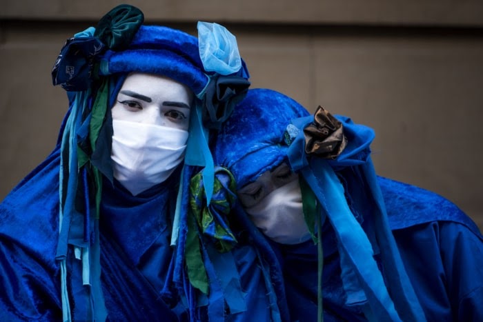 A Blue Rebel takes part in a ceremony of grief at the end of COP26. Photo: Mark Richards