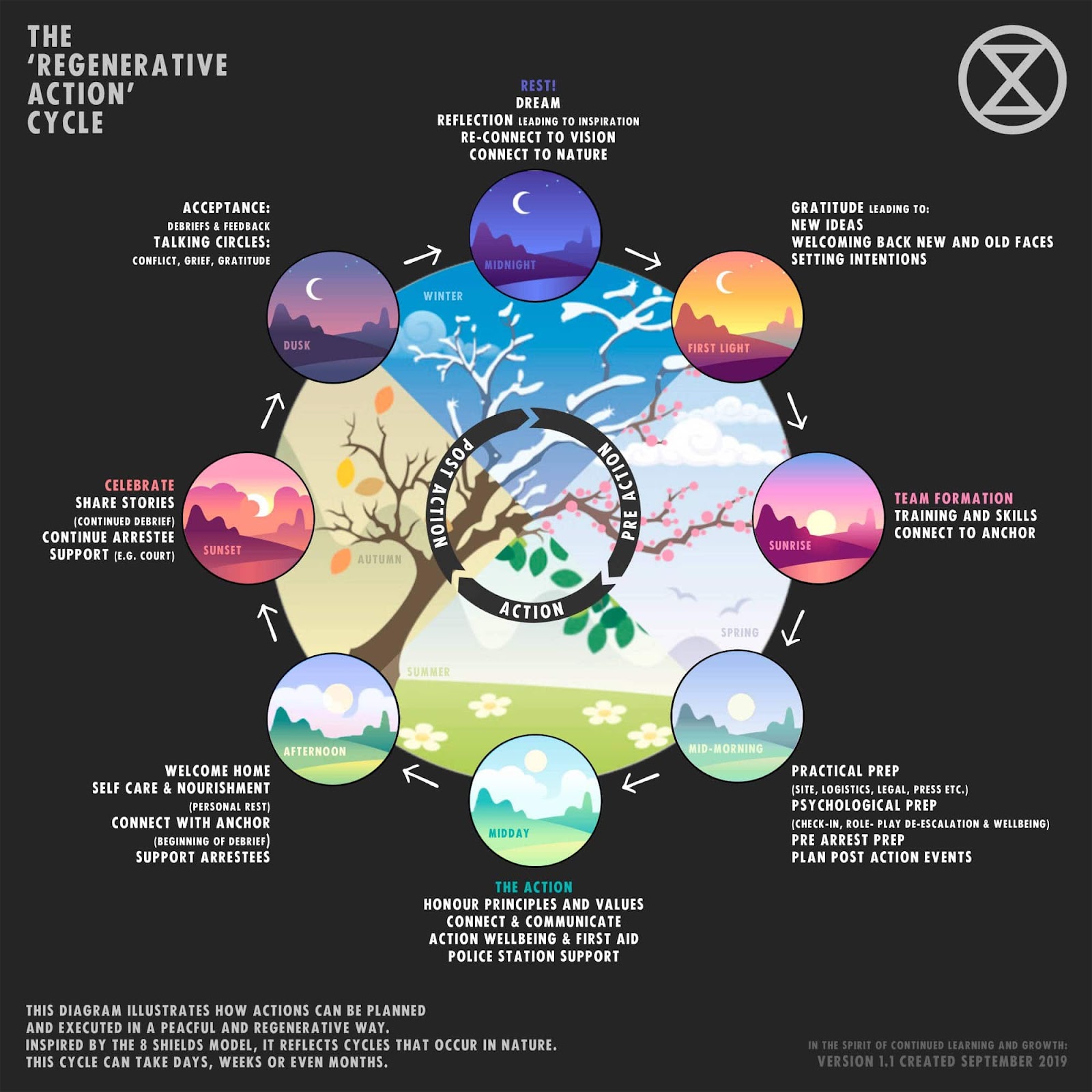The Regenerative Action Cycle courtesy of XR Barcelona.