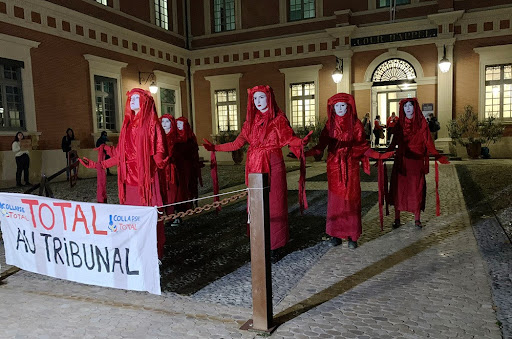 21-22 NOV | Berlin, Germany, and Toulouse, France. As part of the worldwide Collapse Total campaign (see story in main Newsletter), rebels rallied outside the Total headquarters in Berlin (top) and demonstrated outside the Court of Appeal in Toulouse (above).