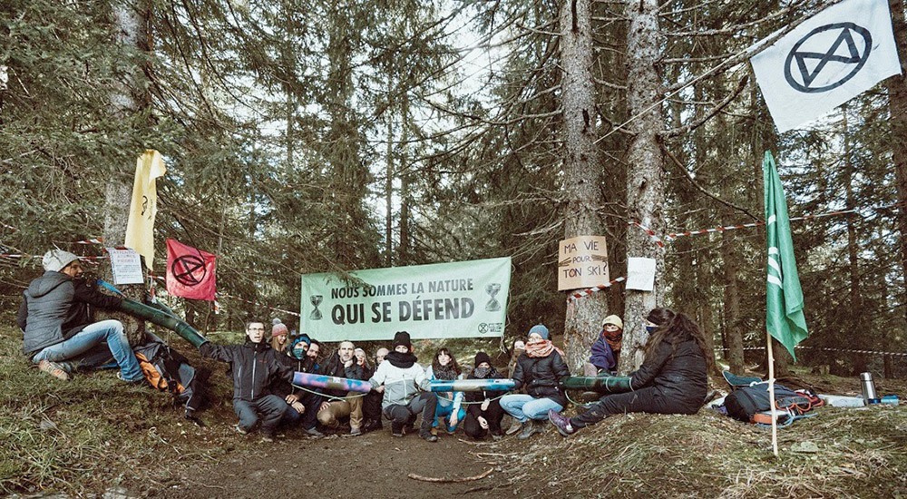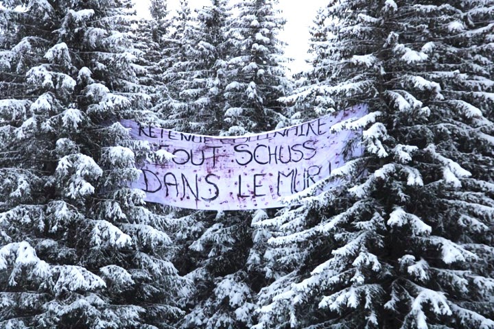 30 NOV | Haute-Savoie, France. Rebels from Annecy camped day and night for two weeks in the Bois de la Colombière at La Clusaz. They were trying to halt construction of a giant hill reservoir largely intended for making artificial snow.
