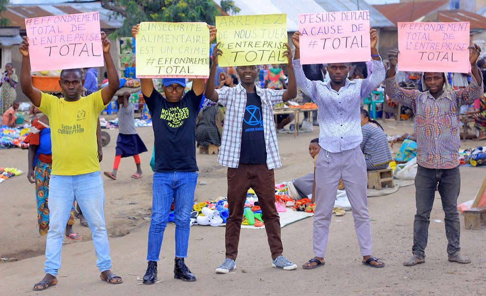 9 NOV | Rutshuru, Democratic Republic of Congo (DRC). Activists from XR Rutshuru, a town in the east of the DRC near the border with Uganda and Rwanda, demonstrated against drilling by French oil giant Total in the Virunga National Park, a world heritage site. They said: “Beyond the war, the threats linked to the exploitation of natural resources in Virunga constitute another ordeal on the lives of local residents.”